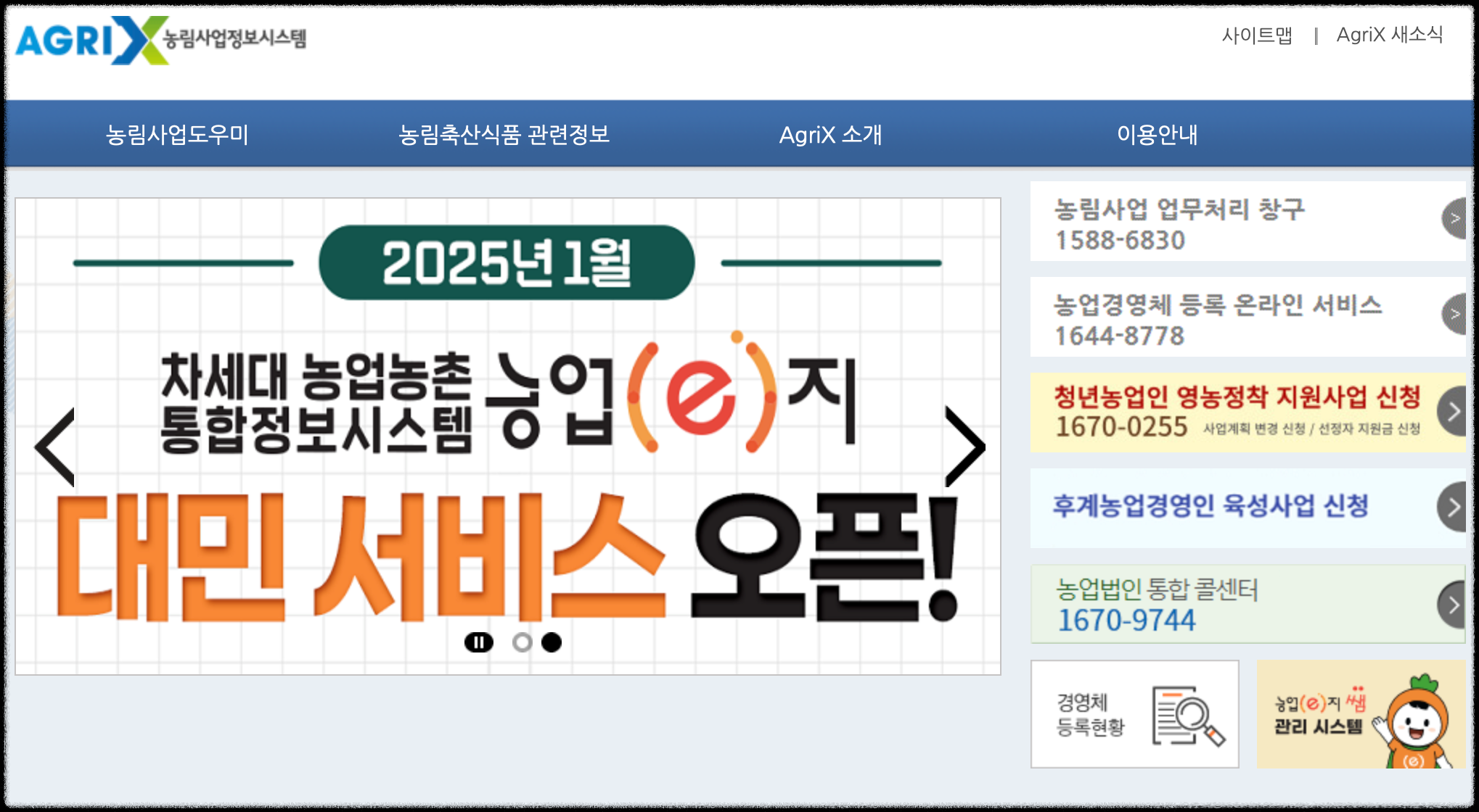 👉 [농림사업정보시스템(Agrix) 홈페이지 바로가기]