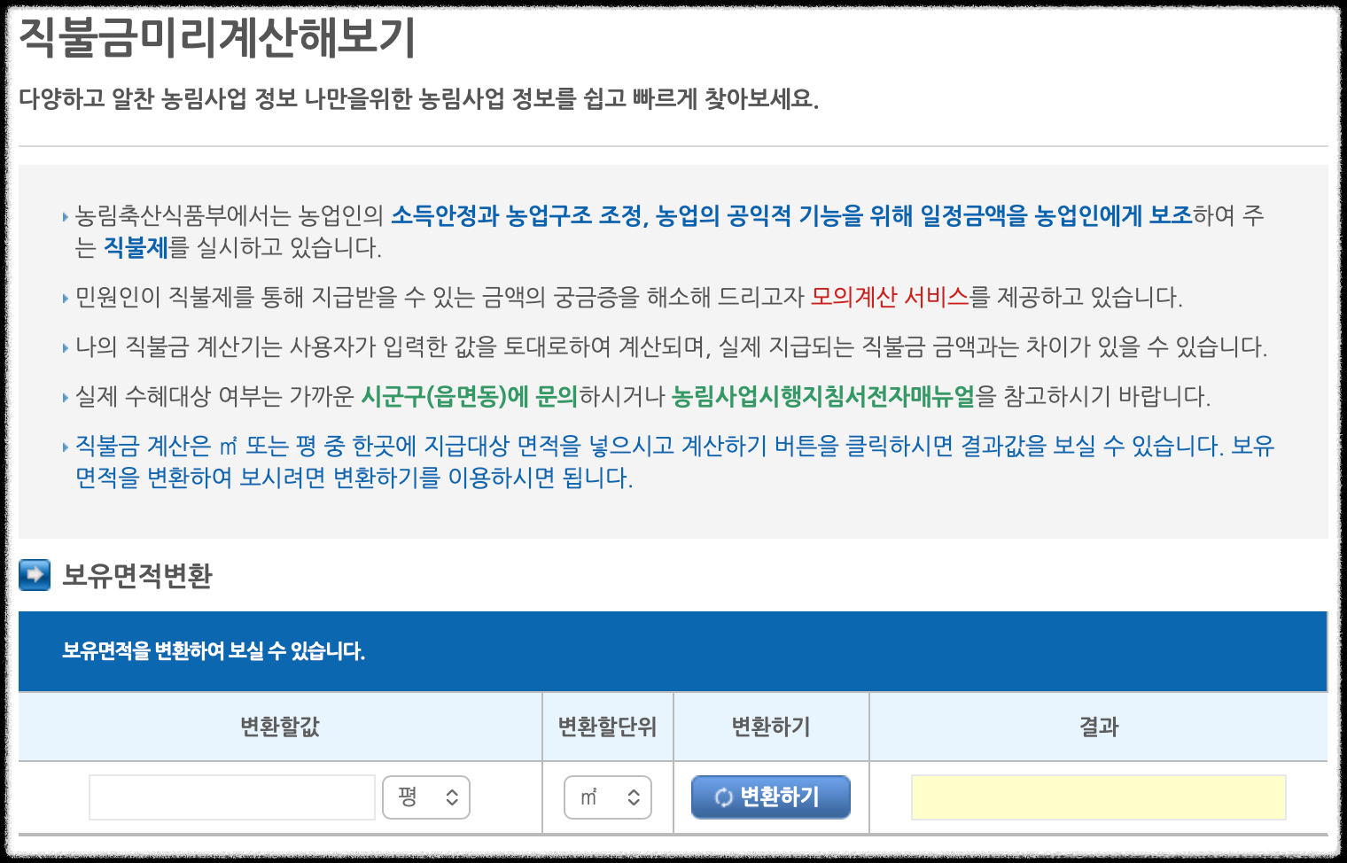 💡 참고: 즐겨찾기(Ctrl+D) 해두시면 매년 돌아오는 직불금 신청 시즌에 더욱 편리하게 이용하실 수 있습니다.