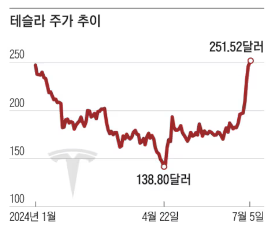 트럼프 대통령 후보자에 배팅을 하였던 일론머스크의 테슬라가 이후에 주가가 전망이 밝은 것으로 보입니다.