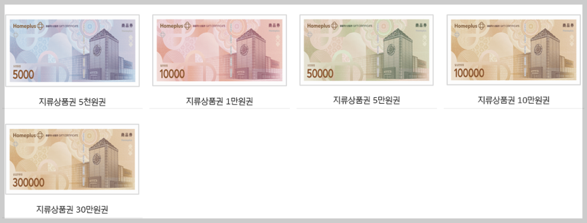 홈플러스 지류로 된 상품권의 특징은 다음과 같습니다.