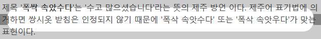 '폭싹 속았수다'는 제주 방언으로 "정말 고생하셨습니다"라는 의미를 가지고 있습니다.