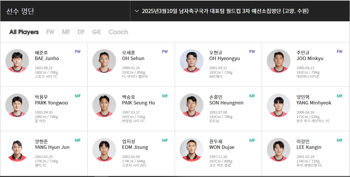 다음 경기 일정 및 대한민국 대표팀 최신 소식은 아래에서 확인을 해보시기 바랍니다.