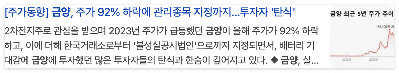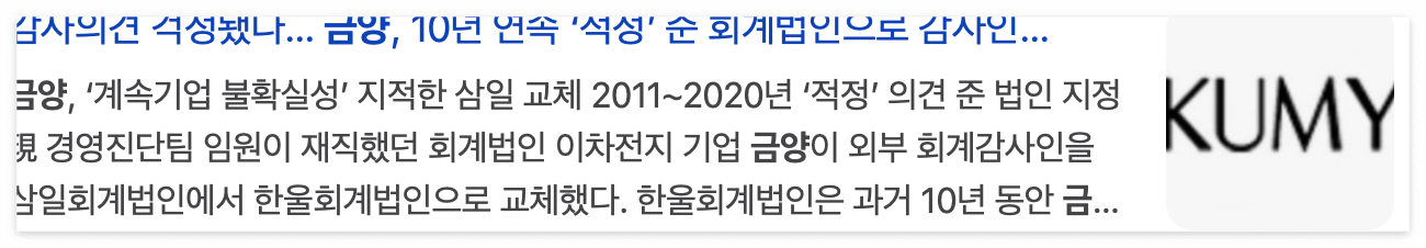 • 금양은 최근 회계감사 문제로 인해 관리종목으로 지정되었다.